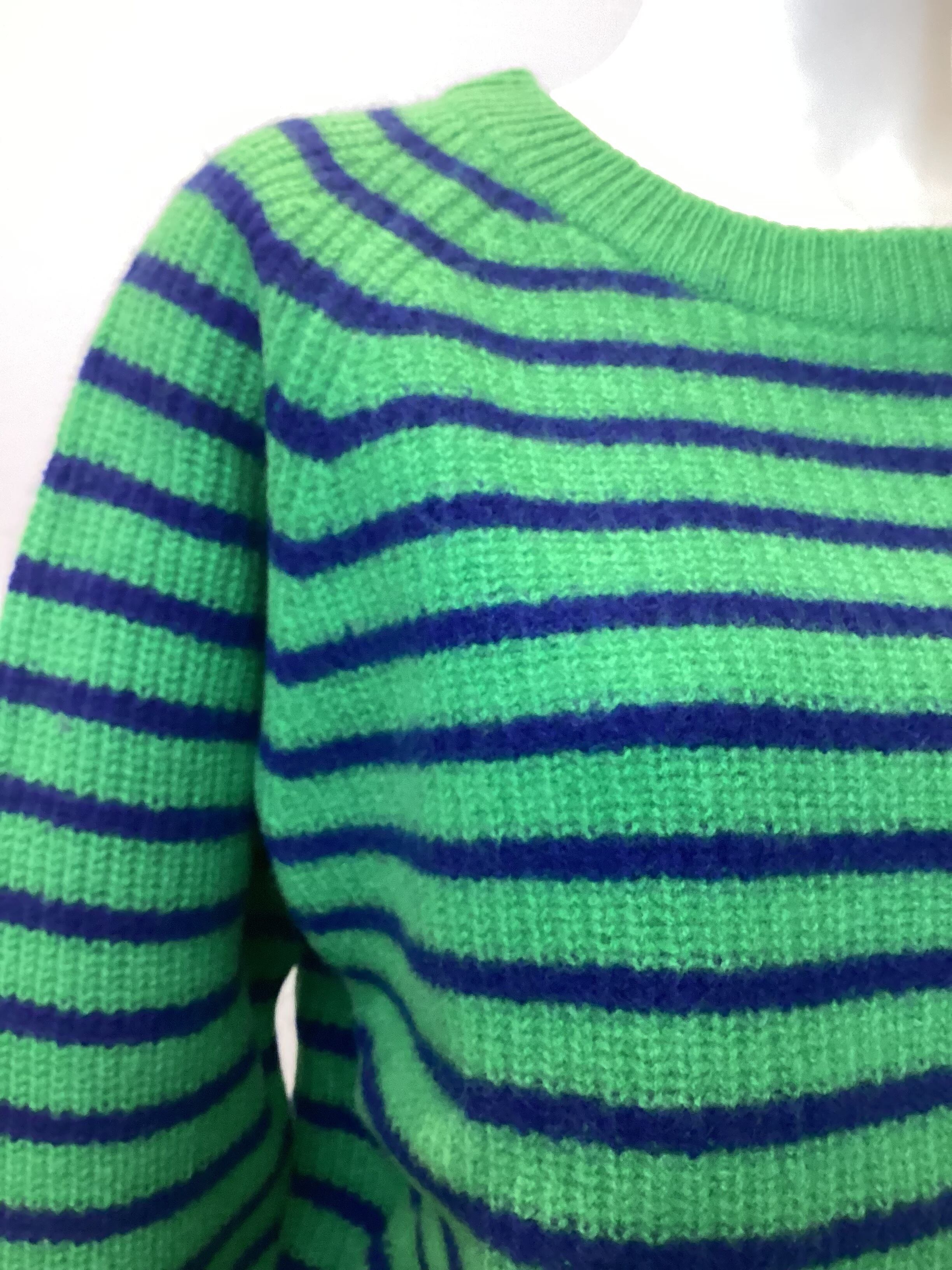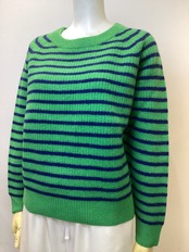 ■洗練されたスタイルを演出するボーダークルーネックニットの登場です!畔編みデザインが特徴的で、シンプルながらもおしゃれな印象を与えるアイテムです。柔らかな素材感が肌に優しく、着心地も抜群。カジュアルなコーディネートから、少し落ち着いたスタイルまで幅広くご活用いただけます。